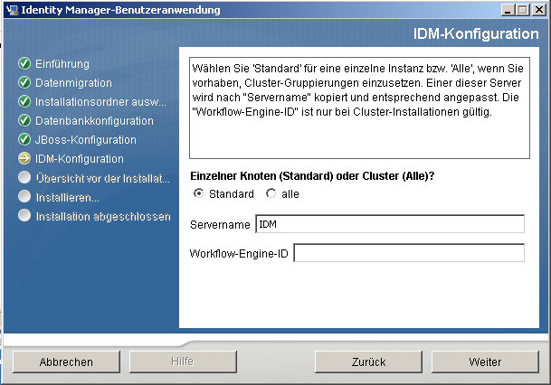 Sie haben die Benutzeranwendung als erstes Mitglied eines JBoss-Clusters installiert und führen nun die Installation auf nachfolgenden Cluster-Mitgliedern durch (für die derselbe Master-Schlüssel benötigt wird).