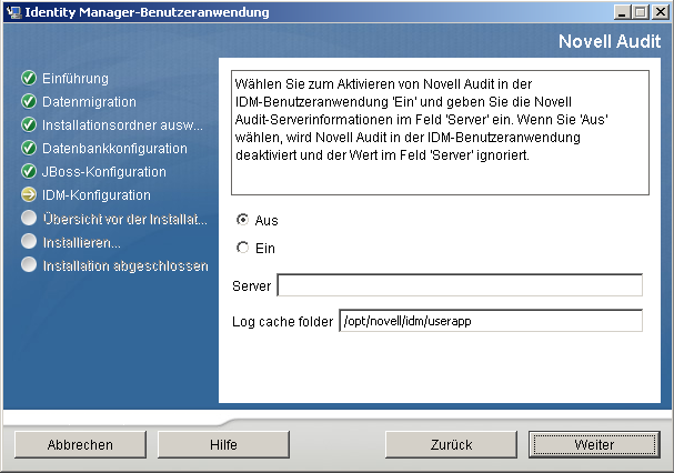 Klicken Sie auf und fahren Sie mit Abschnitt 5.5.12, Aktivieren der Novell Audit-Protokollierung fort.