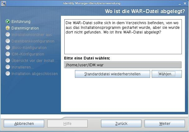 Wenn sich die WAR-Datei der Identity Manager-Benutzeranwendung nicht im selben Verzeichnis befindet wie das Installationsprogramm, werden Sie aufgefordert, den Pfad zur WAR-Datei einzugeben.