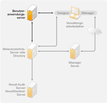 Die Benutzeranwendung sollte auf einem separaten Server ausgeführt werden, wie in Abbildung 3-7 dargestellt. Sie benötigen möglicherweise mehrere Benutzeranwendungs-Server.