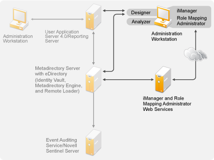 Wählen Sie zur Installation von iManager, Designer, Analyzer und dem Rollenzuordnungs-administrator diese Komponenten mithilfe der entsprechenden Kontrollkästchen auf der Seite „Komponenten auswählen“ der Installation einzeln aus. Abbildung 2-3 veranschaulicht diese Komponenten.