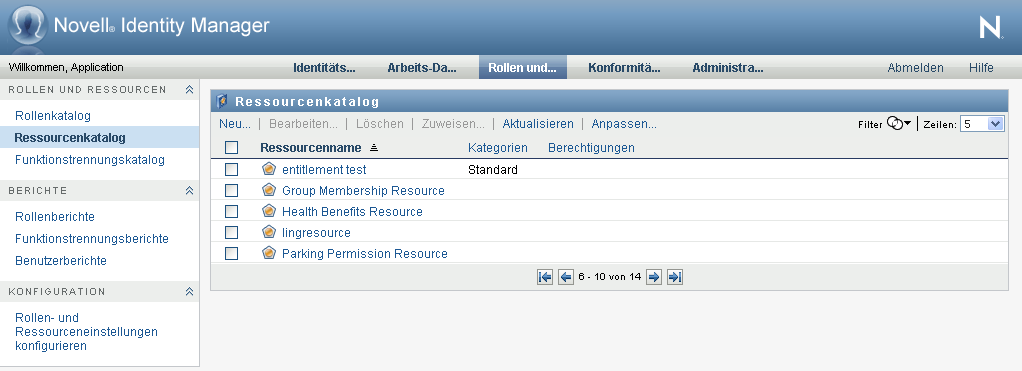 Wenn Sie auf eine Aktion klicken, wird die zugehörige Seite im rechten Teilfenster angezeigt. In der Regel enthält diese Seite ein Fenster mit den Details zu dieser Aktion. Sie kann z. B. eine Liste oder ein Formular anzeigen, in der Sie eine Auswahl treffen bzw. in das Sie Daten eingeben können, wie in folgendem Beispiel dargestellt: