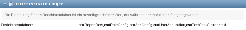 Der Wert für den Berichtscontainer ist eine schreibgeschützte Einstellung, die während der Installation festgelegt wird.