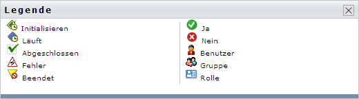 Die Legende enthält eine kurze Beschreibung der Symbole auf der Registerkarte . Die folgende Abbildung zeigt die Legende.