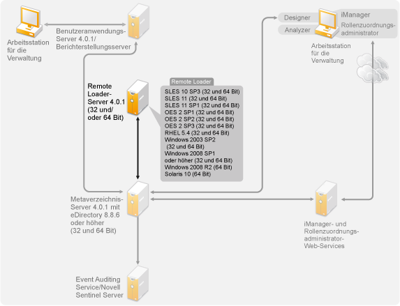 Der Remote Loader läuft im 32-Bit- und im 64-Bit-Modus. Novell empfiehlt, dass Sie vor der Installation von Identity Manager mit der automatischen Aktualisierungsfunktion des Herstellers die neuesten Betriebssystem-Patches aufspielen. |