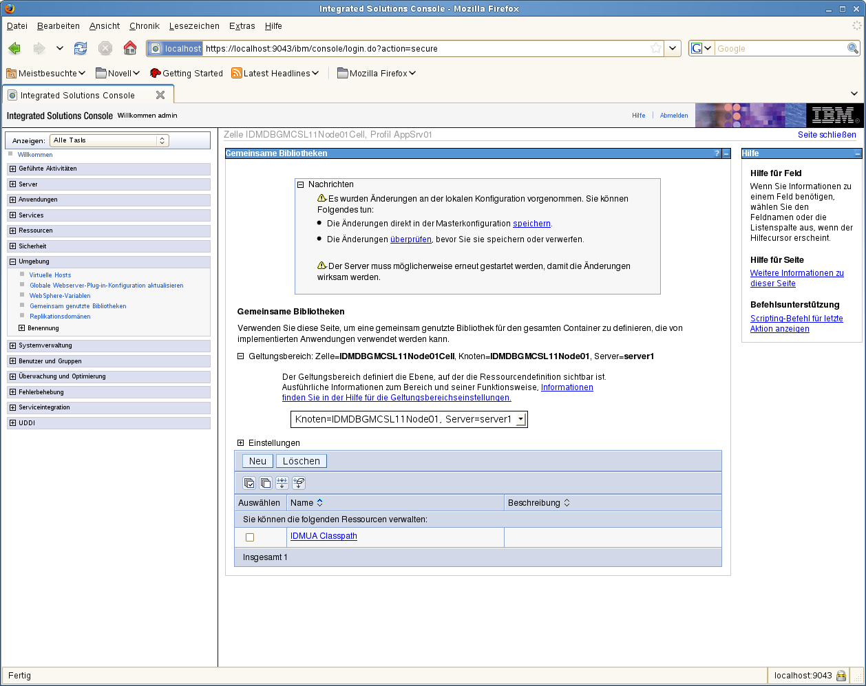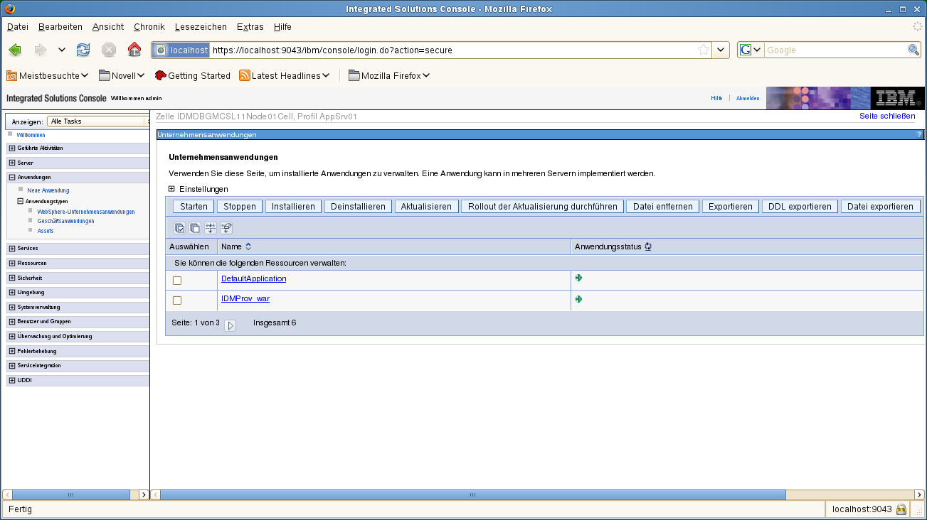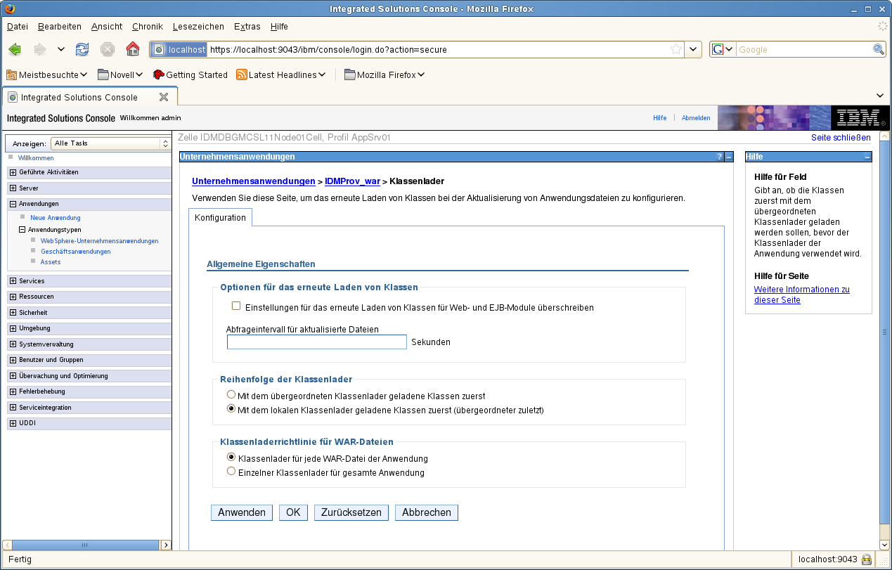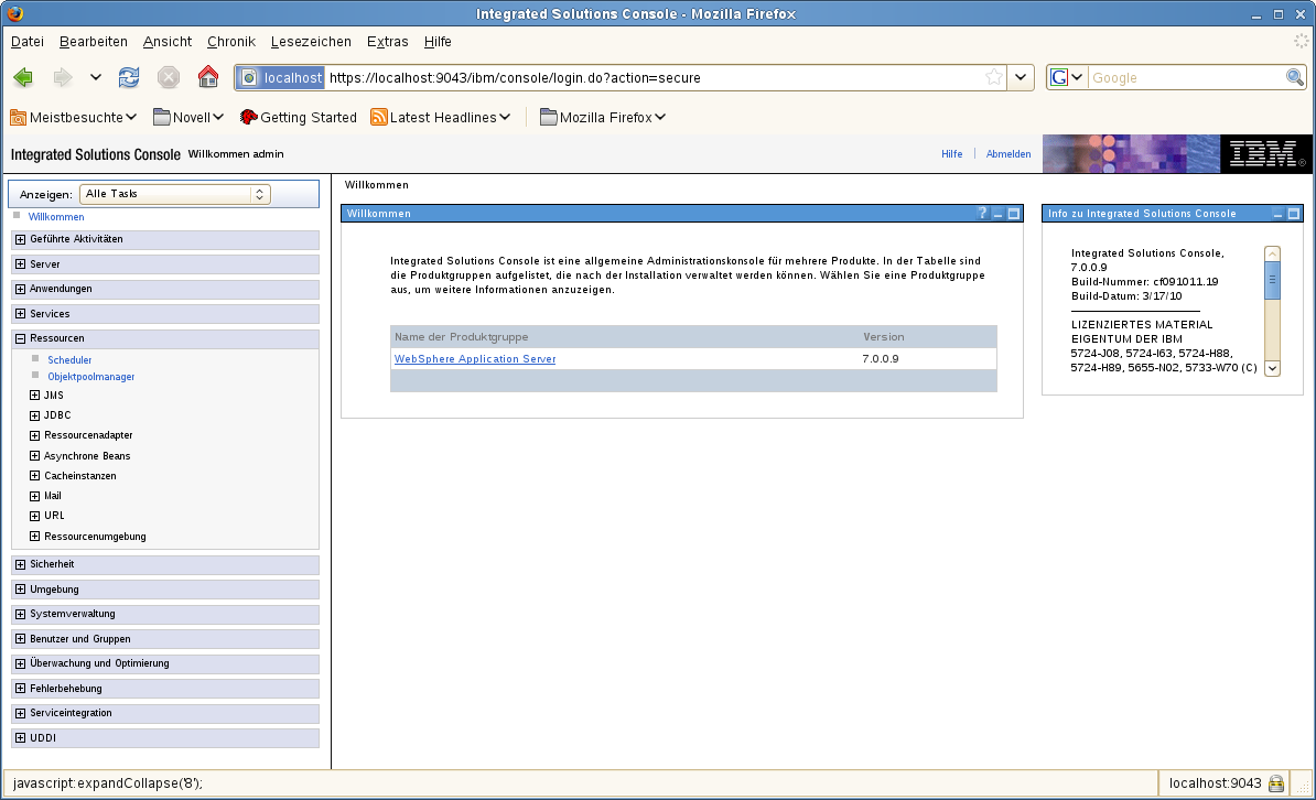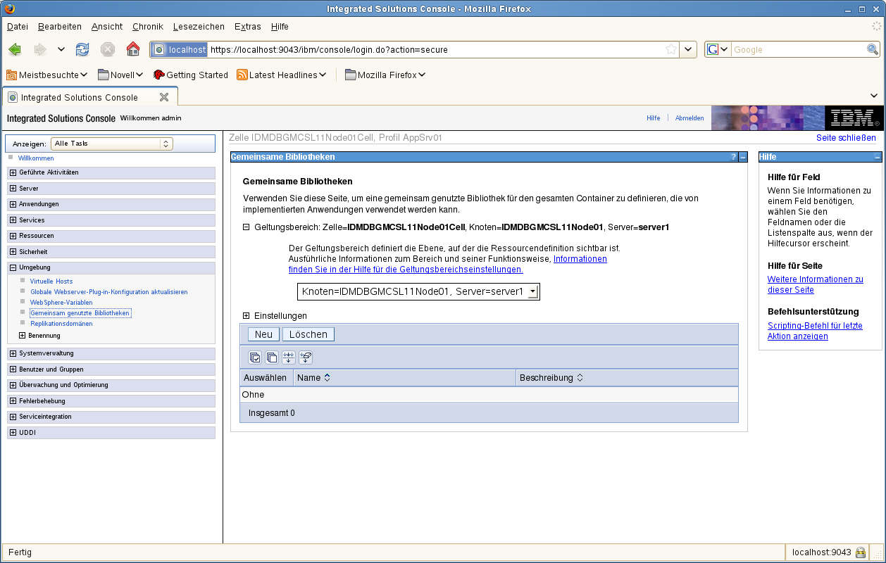 Melden Sie sich bei der Administrationskonsole von WebSphere als Admin-Benutzer an.