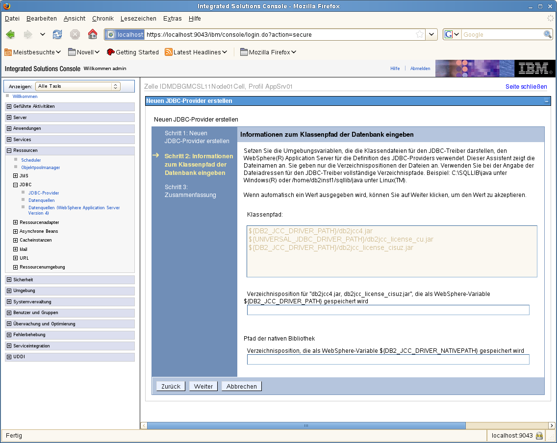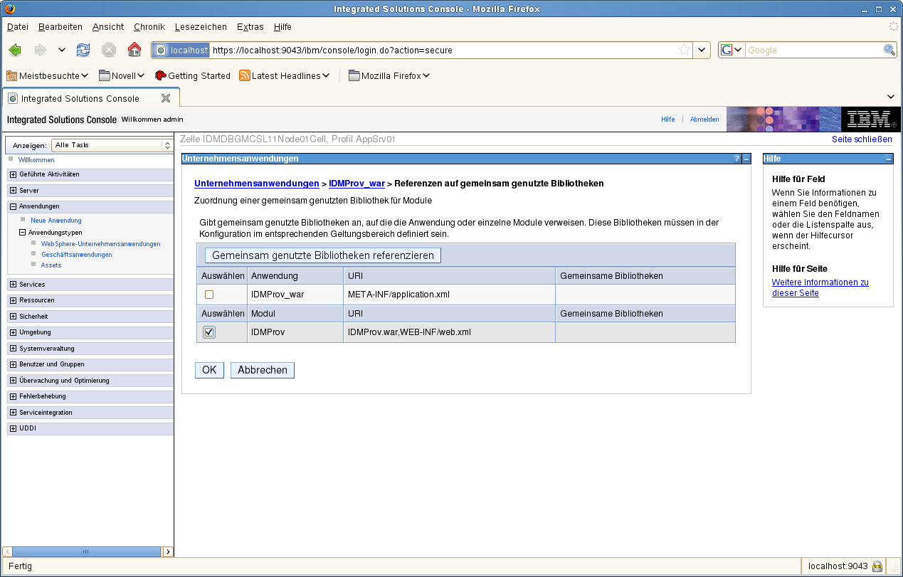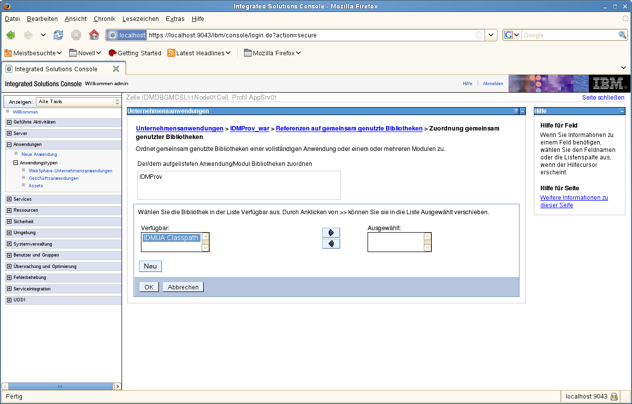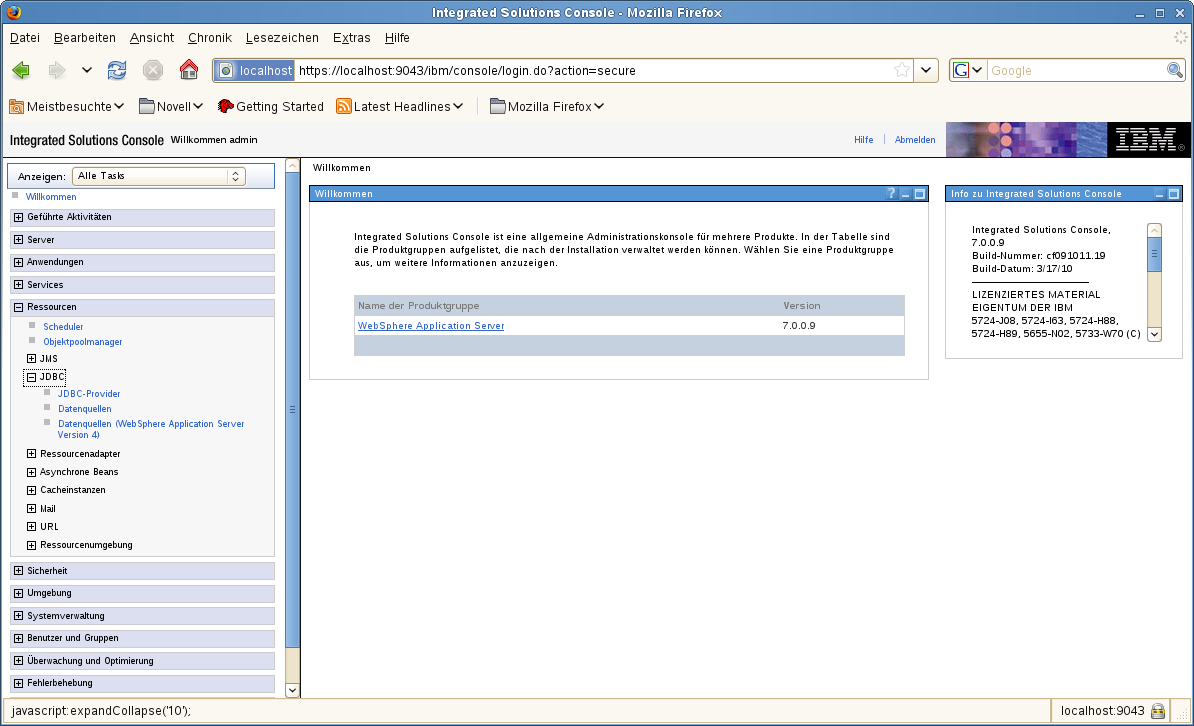 Melden Sie sich bei der Administrationskonsole von WebSphere als Admin-Benutzer an.