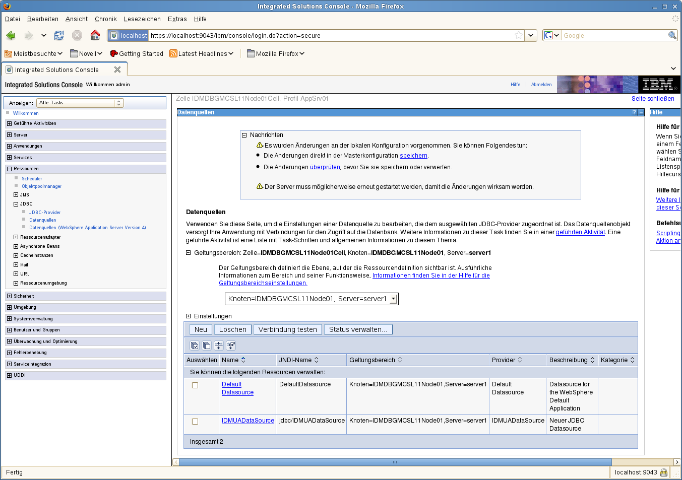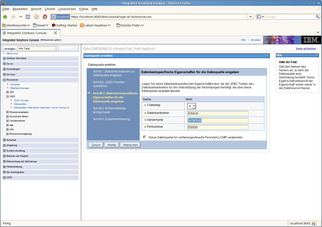 Geben Sie den Namen der Datenquelle und den JNDI-Namen ein (z. B. für beide „IDMUADataSource“).