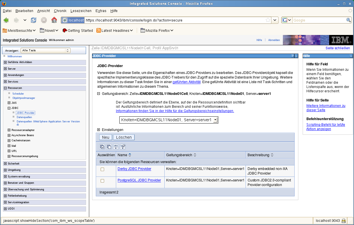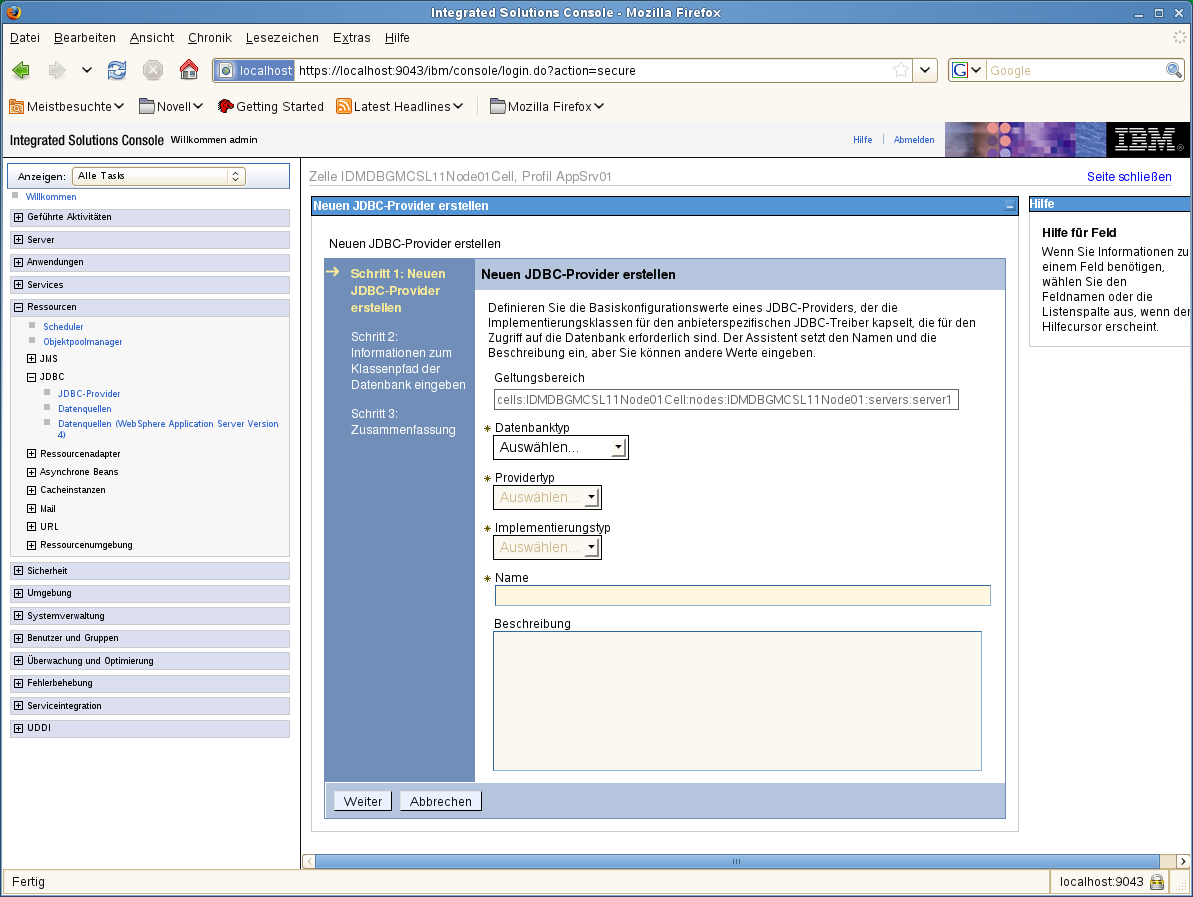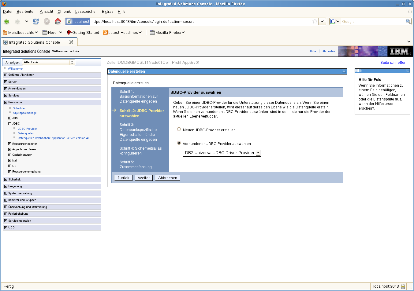 Wählen Sie den zuvor erstellten JDBC-Provider aus.