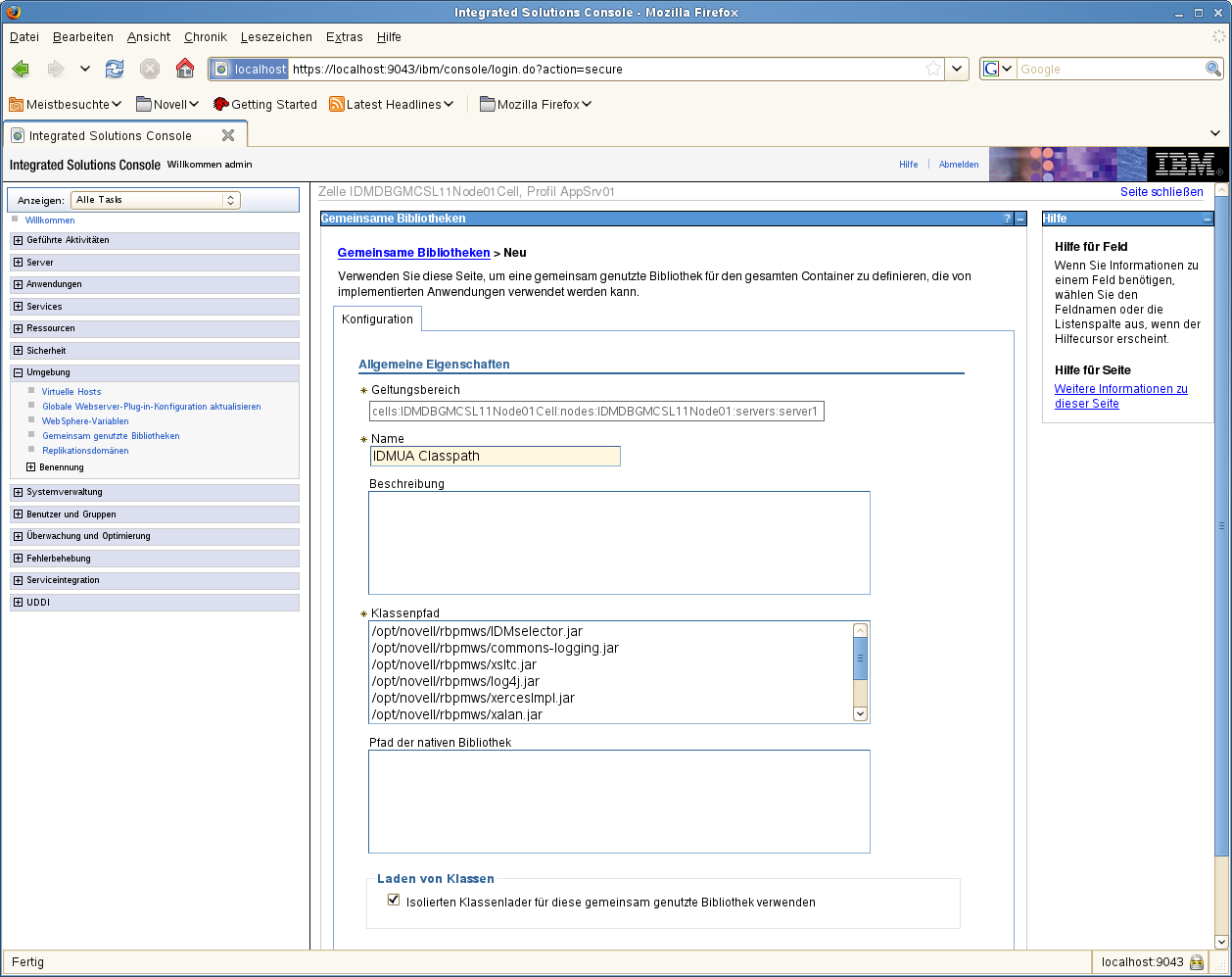 Geben Sie einen Namen ein (z. B. „IDMUA Classloader“).