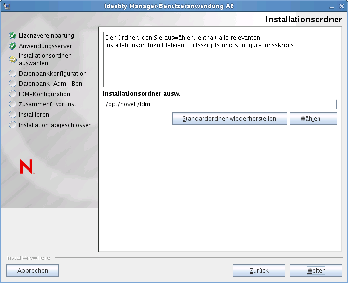 Die Datei Novell-Custom-Install.log enthält Informationen zur Konfiguration der Benutzeranwendung, die während der Installation vorgenommen wurde.