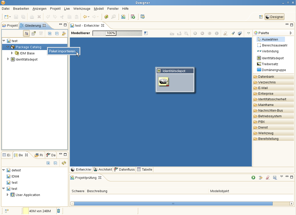 Sobald Sie ein neues Identity Manager-Projekt in Designer erstellt haben, wählen Sie den aus und klicken Sie auf .
