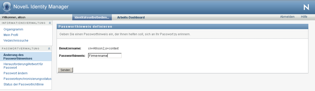 Die Seite „Passworthinweisdefinition“ wird angezeigt: