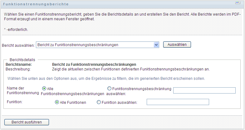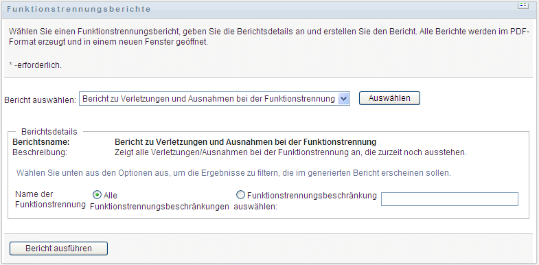 So erstellen Sie den Bericht zu Funktionstrennungsbeschränkungen und zeigen ihn an: