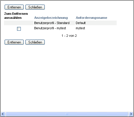 Es ist nicht möglich, die mit dem Produkt installierten Standard-Anforderungsdefinitionen zu entfernen. Daher werden für die Standard-Anforderungsdefinitionen keine Kontrollkästchen angezeigt.