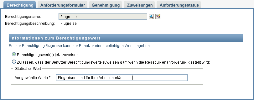 Berechtigung mit einem Wert |