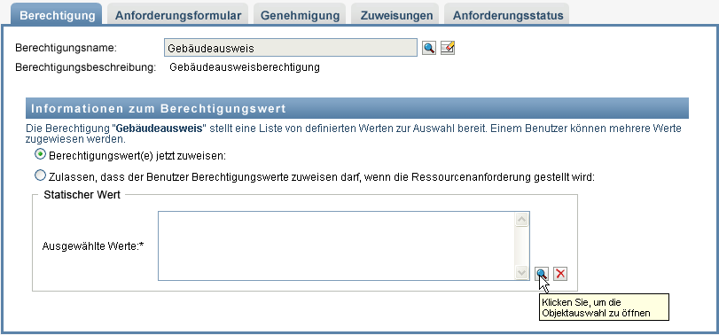 Wählen Sie mithilfe der Objektauswahl die Berechtigungswerte aus: