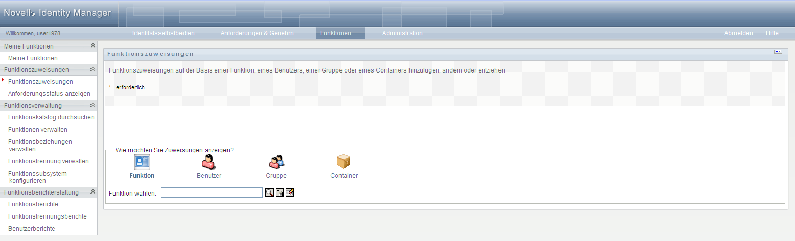 Die Aktionen zur werden nur angezeigt, wenn Sie ein Funktionsmoduladministrator oder ein Funktionsmanager sind. Die Aktion innerhalb der wird nur angezeigt, wenn Sie ein Funktionsmoduladministrator oder ein Sicherheitsbeauftragter sind. Die Aktionen zur werden nur angezeigt, wenn Sie ein Funktionsmoduladministrator oder ein Funktions-Auditor sind.