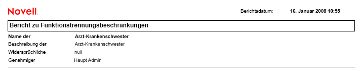 Abbildung 18-3 Beispielbericht zu Funktionstrennungsbeschränkungen