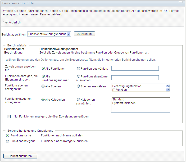 So erstellen und zeigen Sie den Funktionszuweisungsbericht: