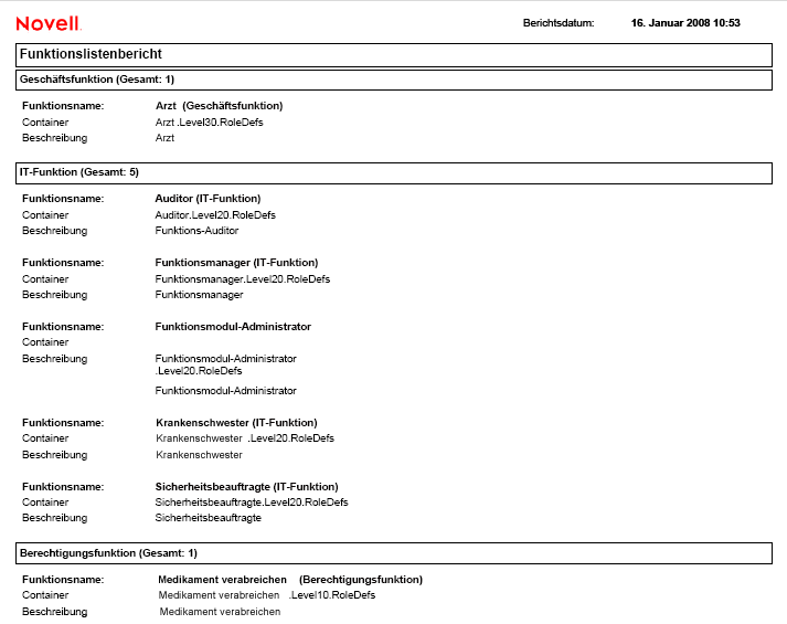 Abbildung 18-1 Beispielfunktionslistenbericht