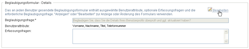 Bei einem Benutzerprofilbeglaubigungsprozess muss jedes Mitglied einer ausgewählten Gruppe oder Funktion die Daten beglaubigen.