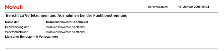 Abbildung 18-3 Beispielbericht zu Funktionstrennungsbeschränkungen