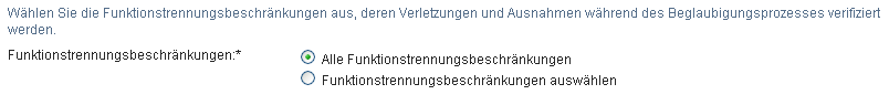 Wählen Sie die Funktionstrennungsbeschränkungen, deren Verletzungen und Ausnahmen verifiziert werden, wie folgt aus: