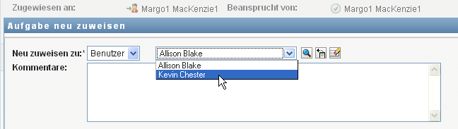 Wählen Sie in der Dropdown-Liste den Benutzer aus, dem Sie die Aufgabe jetzt zuweisen möchten.