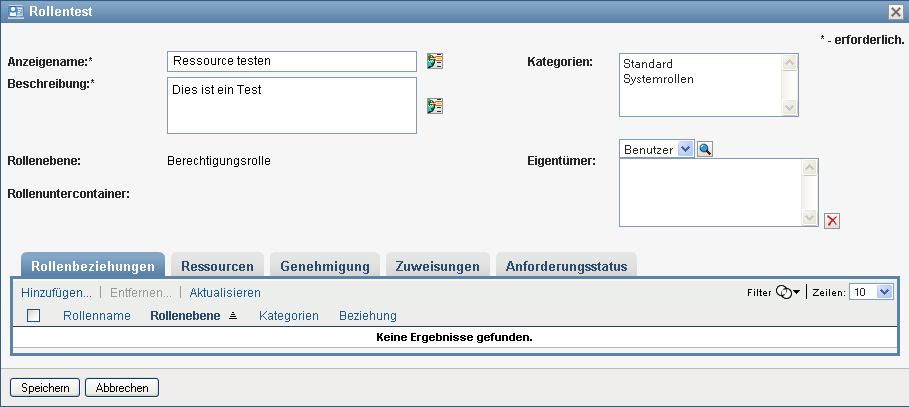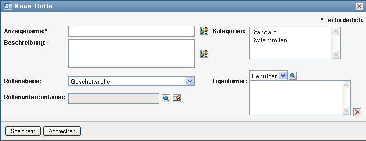 Ermöglicht Ihnen, Rollen für die Rollenorganisation zu kategorisieren. Kategorien werden zur Filterung von Rollenlisten verwendet. Kategorien erlauben Mehrfachauswahlen. |