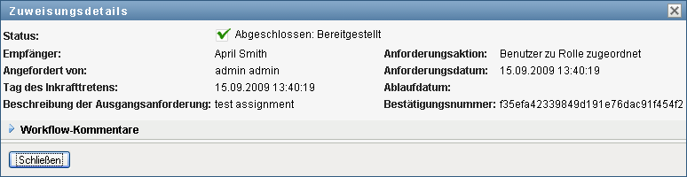 Einzelheiten zum Arbeiten mit dem Rollenzuweisungs-Anforderungsformular finden Sie unter Zuweisen einer Rolle aus dem Katalog.