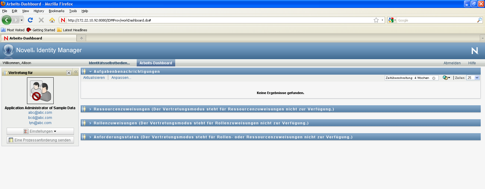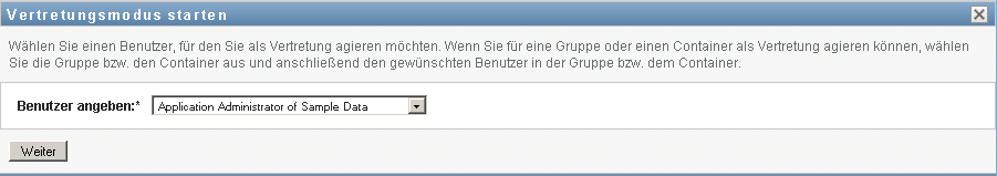 Wenn Sie nicht berechtigt sind, einen anderen Benutzer zu vertreten, zeigt die Benutzeranwendung folgende Meldung an: