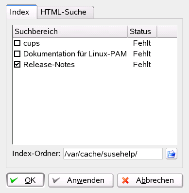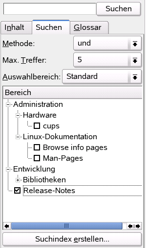Um alle installierten Informationsquellen von NLD zu durchsuchen, müssen Sie einen Suchindex generieren und einige Suchparameter festlegen. Klicken Sie hierzu auf die Registerkarte "Suche". Siehe Abbildung 8.