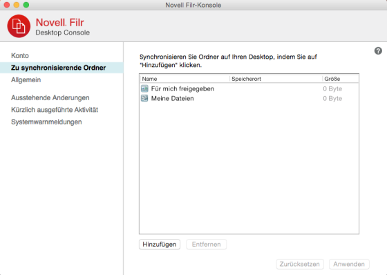 Die Filr-Desktopanwendung für Mac wird unter Mac OSX 10.9 und höher unterstützt.