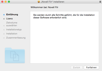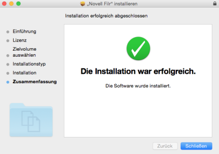 Nach Beenden des Herunterladens wird die Datei NovellFilr-Version.pkg geöffnet.