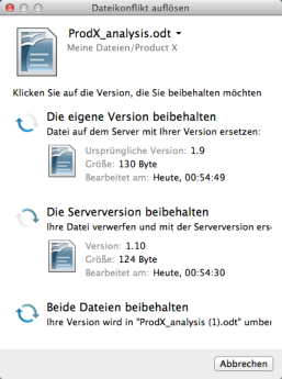 Wenn ein Dokument gleichzeitig an verschiedenen Speicherorten bearbeitet wird, kann ein Konflikt auftreten.