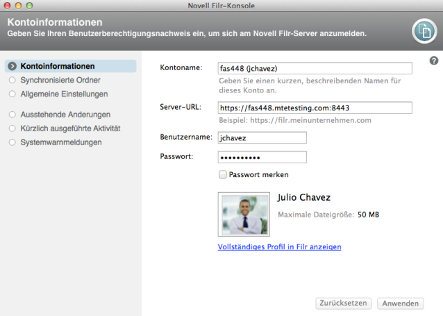 14.0 Ändern der Filr-Kontoinformationen für die Filr-Desktopanwendung