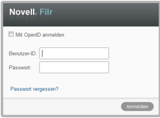 Die Funktion muss außerdem vom Filr-Administrator aktiviert worden sein. Bei bestimmten Filr-Sites ist die Authentifizierung mit OpenID nicht zugelassen.