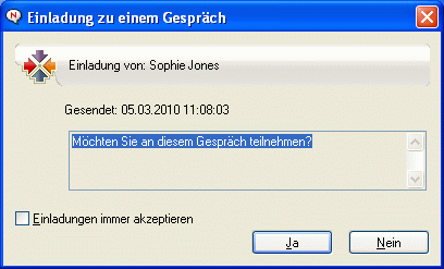 Jeder Benutzer, der zum Gespräch eingeladen wird, empfängt diese Mitteilung: