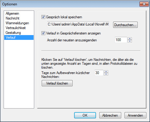 Sie können nur einen Speicherort für alle Verlaufsdateien angeben. Wenn Sie den Speicherort für Verlaufsdateien ändern, werden neue Verlaufsdateien erstellt. Der alte Inhalt der Verlaufsdatei wird beim Anzeigen des Verlaufs nicht angezeigt.