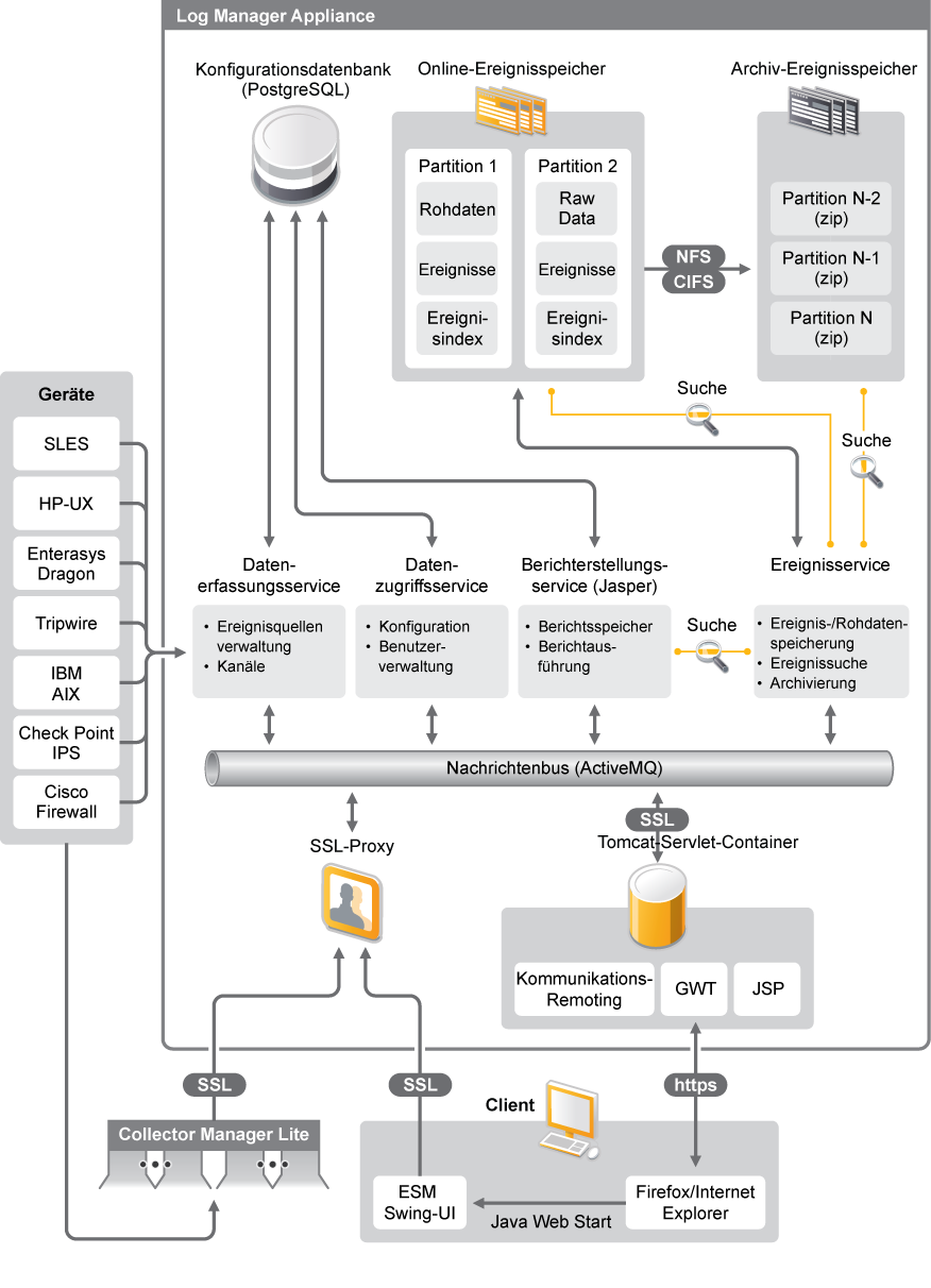 Abbildung 1-1 Architektur von Novell Sentinel Log Manager