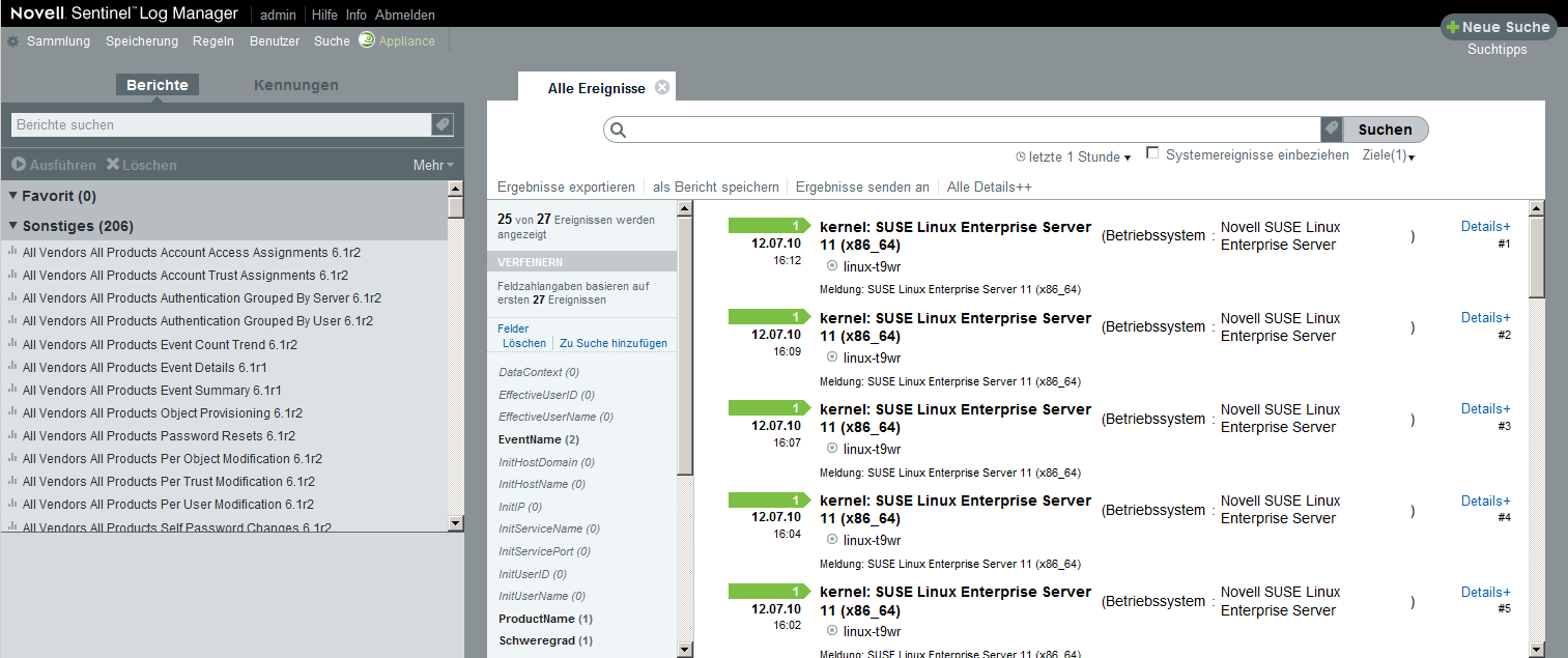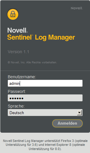 Der bei der Installation als Administrator erstellte Benutzer kann sich an der Weboberfläche anmelden, um Sentinel Log Manager zu konfigurieren und zu verwenden: