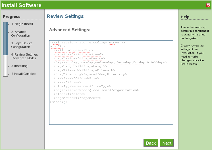 Geben Sie Ihre Netzwerksicherungskonfigurationen für Amanda an.