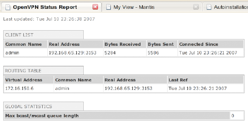 Das Fenster „Verbindungsstatus“ zeigt, welche Clients verbunden sind, und gibt deren Adressen an.