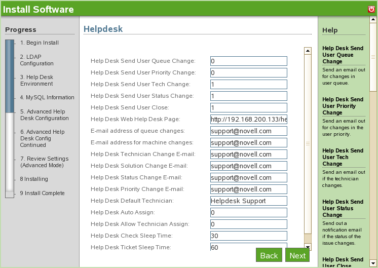 Helpdesk-Downloadpfad: Der Pfad für sämtliche Helpdesk-Downloads. Belassen Sie den Standardwert unverändert, um sicherzustellen, dass Sie Aktualisierungen von Novell ordnungsgemäß erhalten.