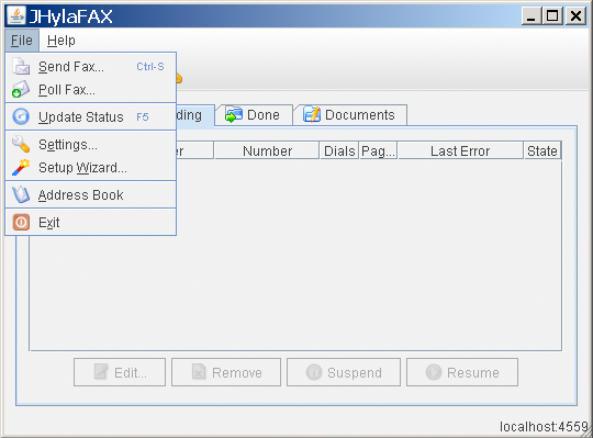 Wenn Sie JHylaFAX verwenden möchten, führen Sie an der Linux-Eingabeaufforderung folgenden Befehl ein: java -jar jhylafax-1.3.10-app.jar.