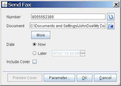 Geben Sie die Telefonnummer an und klicken Sie dann auf das Ordnersymbol, um das zu sendende Dokument auszuwählen.