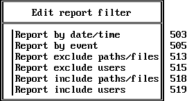 1. From the Auditing reports menu (500), choose Edit report filters.