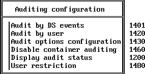 1. Choose Auditing Configuration from the Available audit options menu (1101).