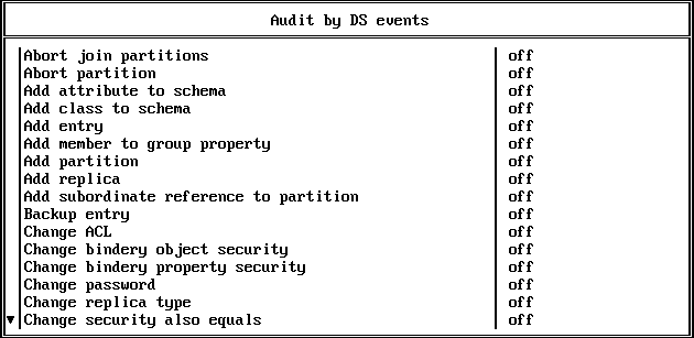 2. Determine the list of events that you want to audit. Move the cursor to each event and press F10 to toggle it to OFF or ON.
